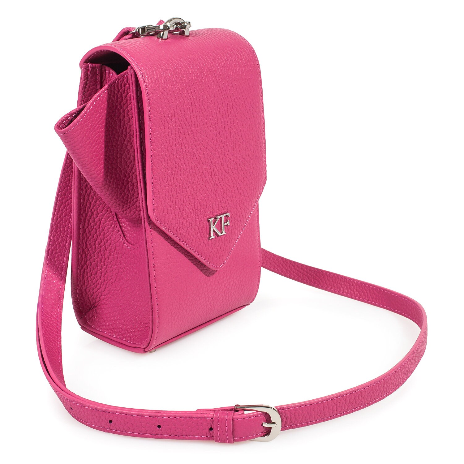 Leather Cross body Bag, Fuchsia Leather Shoulder Bag, Women's Leather Crossbody Bag, Leather bag KF-3613