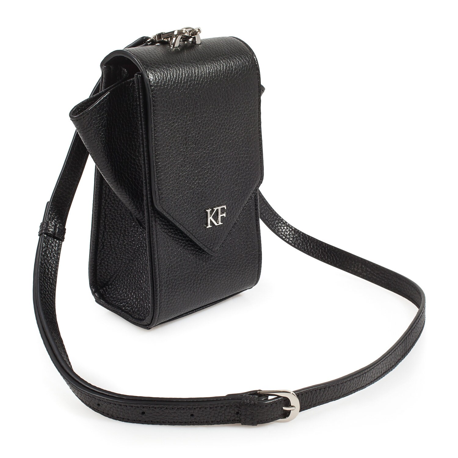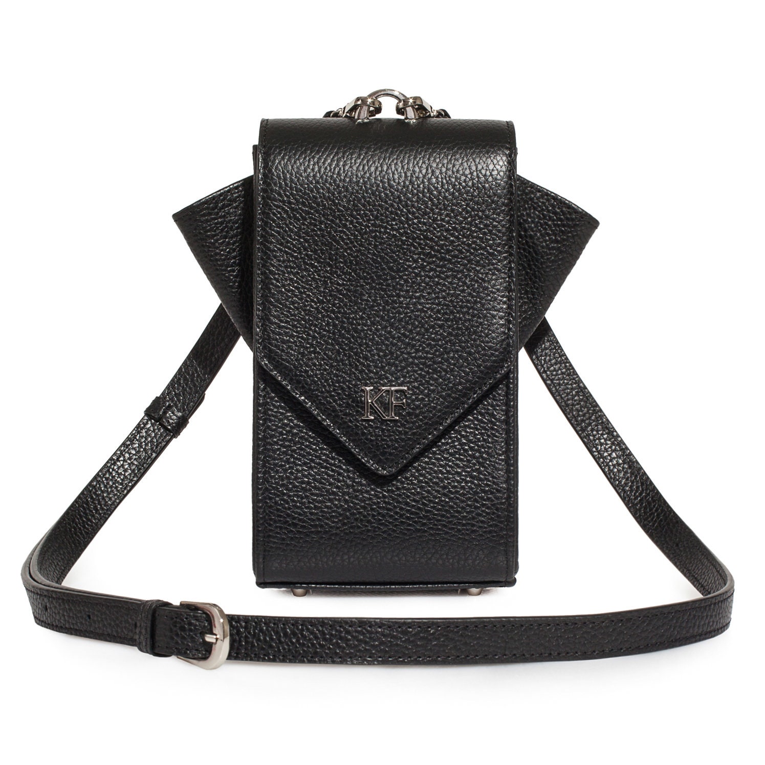 Black genuine leather woman shoulder bag from Ukrainian designer Katerina Fox. Fashionable and elegant modern bag KF for bright girls and women. This bag is able to attract attention and highlight your exquisite taste. Inside the bag is one compartment and a convenient zippered pocket for small items closes the bag on the button magnet. The bag is comfortable to wear on the shoulder or the wrist.