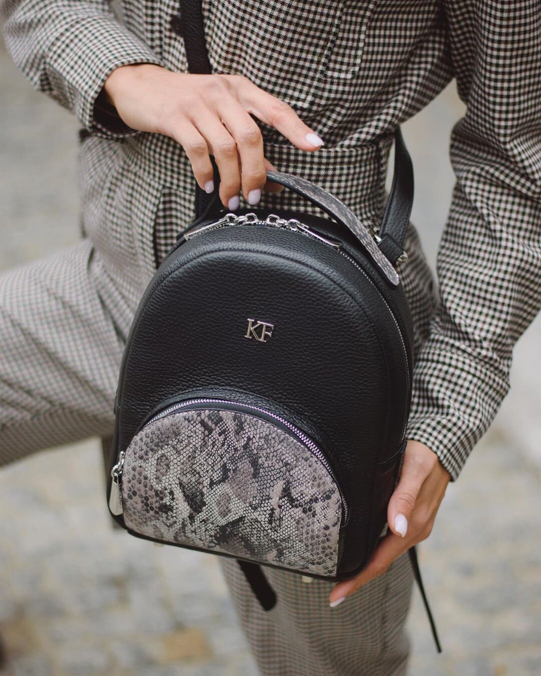 Black genuine leather backpack from ukrainian designer Katerina Fox, which perfectly combines sleek design, functionality and comfort. Despite its small size, it is very roomy. One large internal compartment, one zipper pocket for small items and one patch pockets, backpack closes with a zipper. Outside there is a zipper pocket. The shoulder straps are adjustable, giving You the option to lock in the most comfortable position.