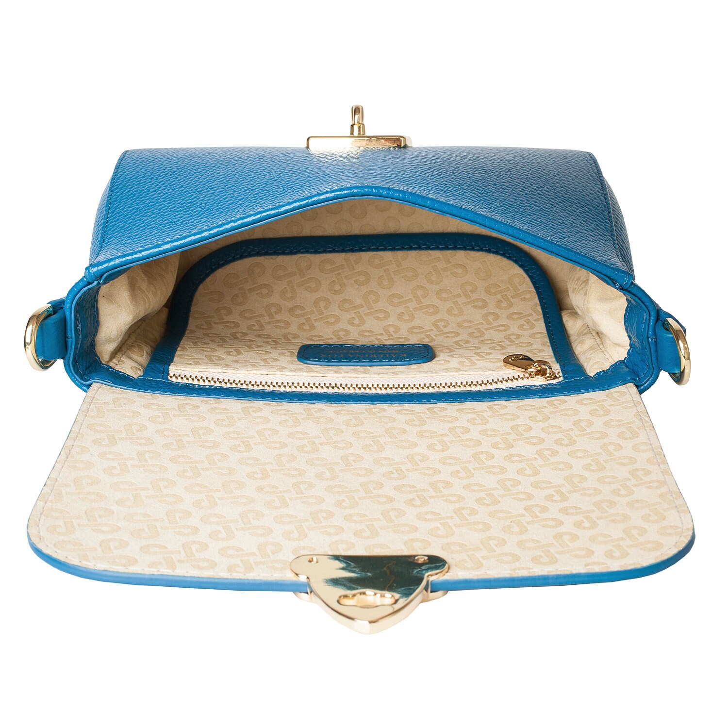 Blue genuine leather woman shoulder bag from ukrainian designer Katerina Fox. Fashionable and elegant modern bag KF for bright girls and women. This bag is able to attract attention and highlight your exquisite taste. Inside the bag is one large compartment and a convenient zippered pocket for small items, closes the bag on the clasp. The bag is comfortable to wear on the shoulder or across the shoulder.