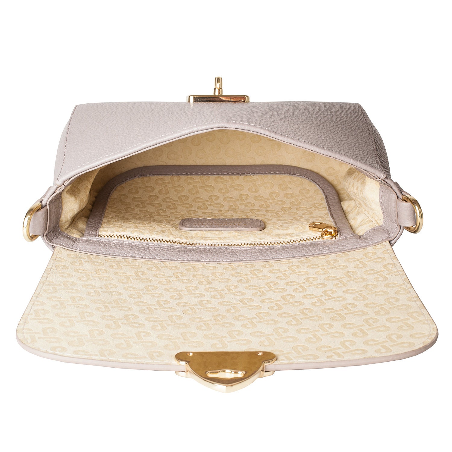 Light taupe genuine leather woman shoulder bag from ukrainian designer Katerina Fox. Fashionable and elegant modern bag KF for bright girls and women. This bag is able to attract attention and highlight your exquisite taste. Inside the bag is one large compartment and a convenient zippered pocket for small items, closes the bag on the clasp. The bag is comfortable to wear on the shoulder or across the shoulder.