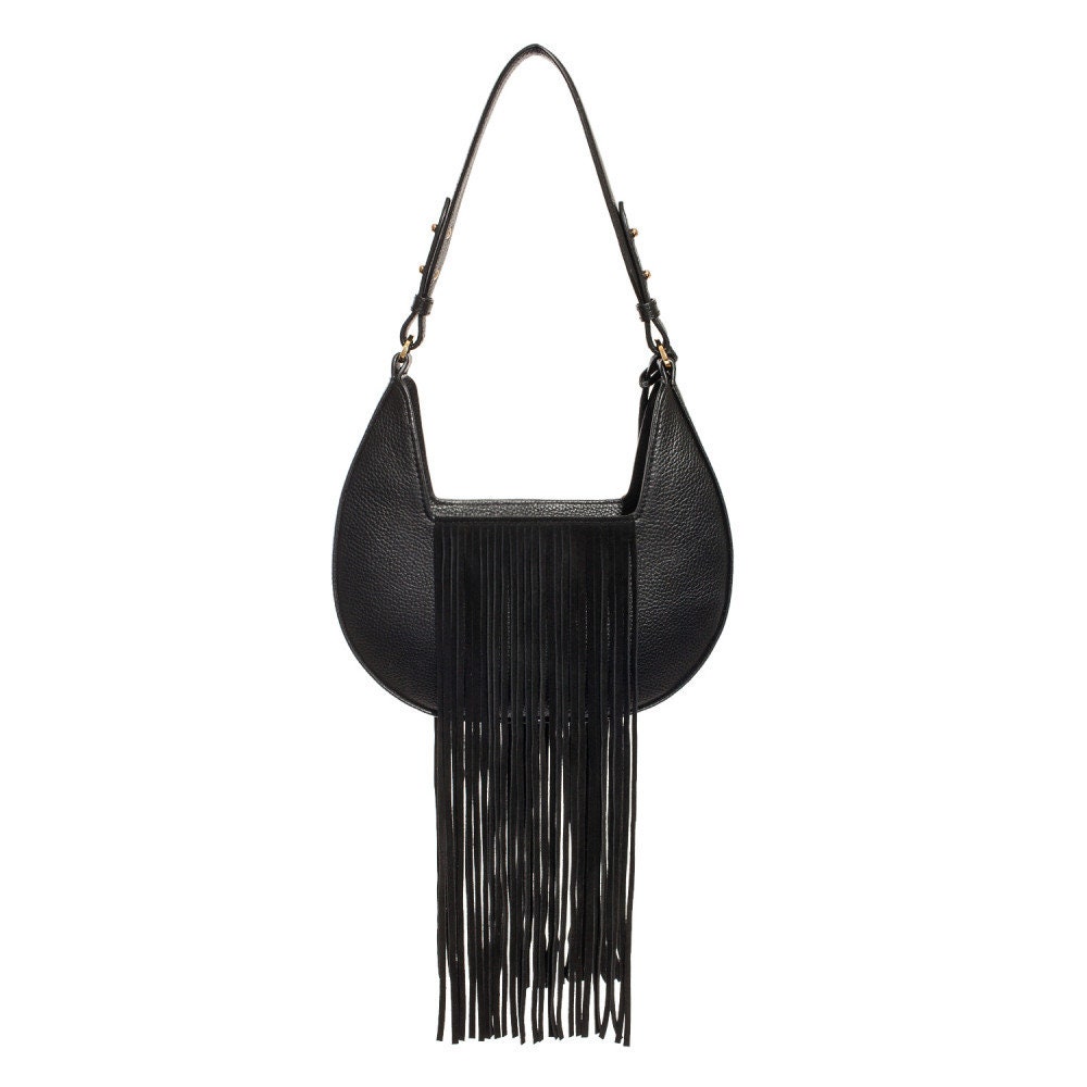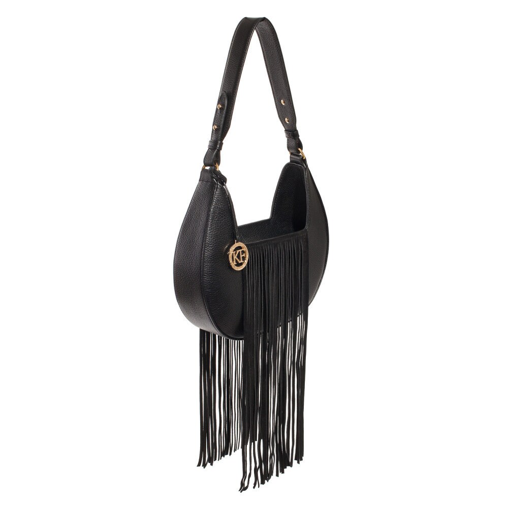 Black genuine leather woman shoulder bag from ukrainian designer Katerina Fox. Fashionable and elegant modern bag KF for bright girls and women. This bag is able to attract attention and highlight your exquisite taste. Inside the bag is one large compartment and two pockets for a small items, close the bag on the zip. The bag is comfortable to wear on the shoulder.