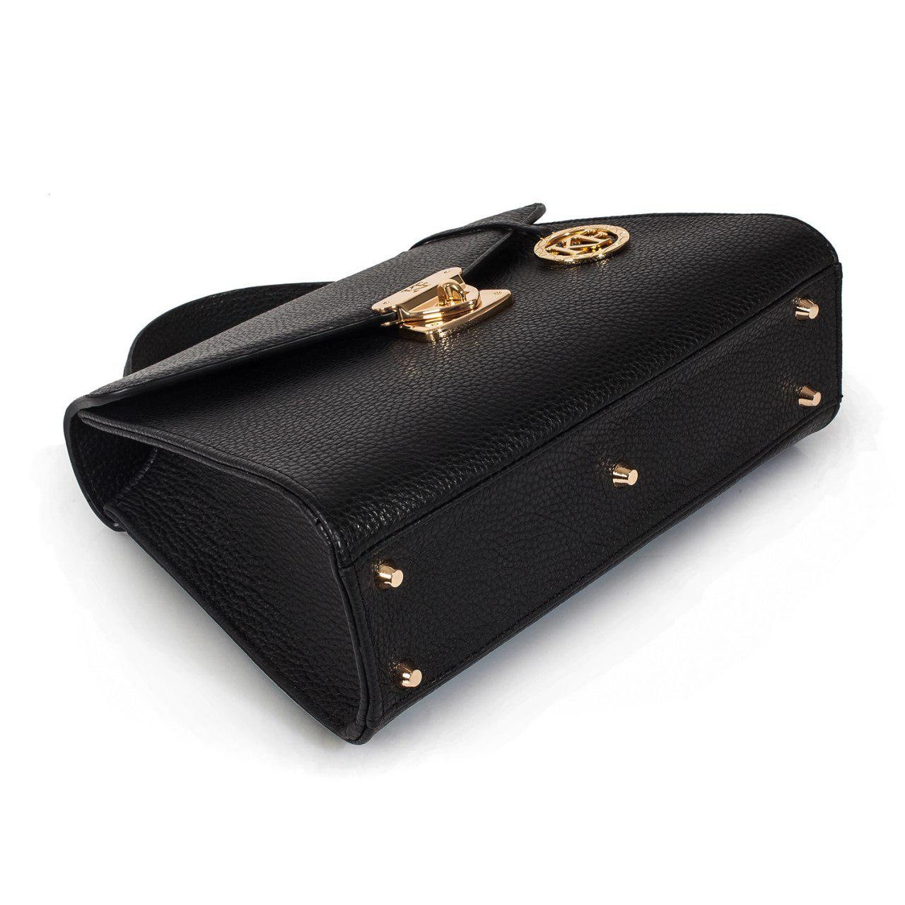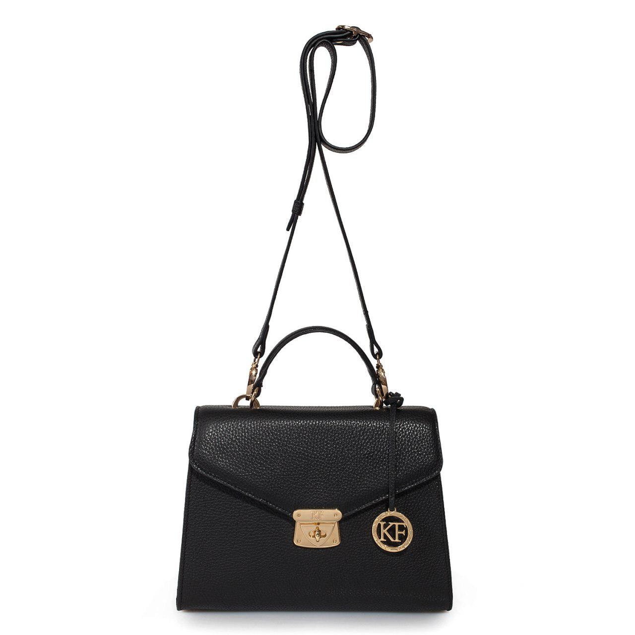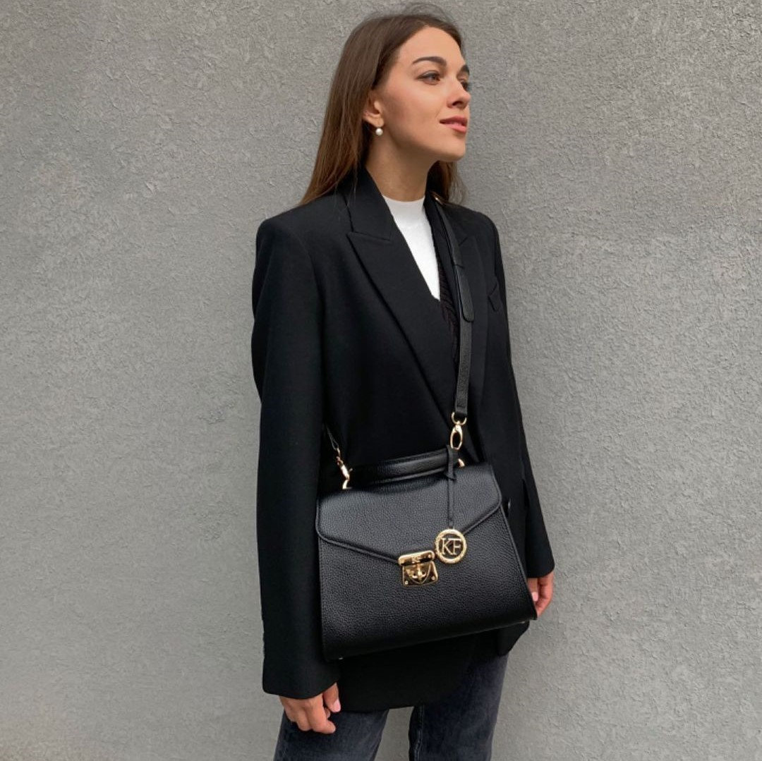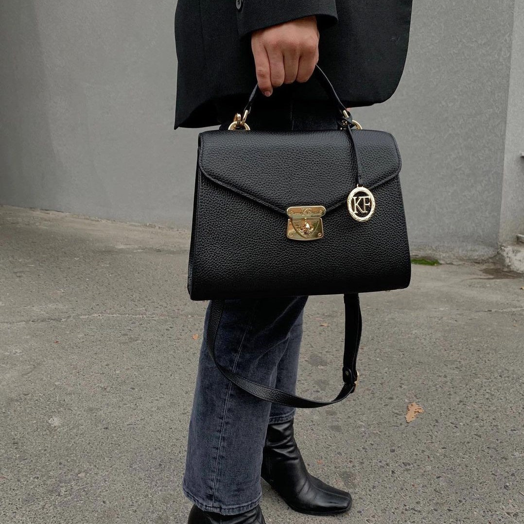 Leather Top Handle Bag, Black Leather Handbag Top Handle, Women's Leather Bag KF-2991