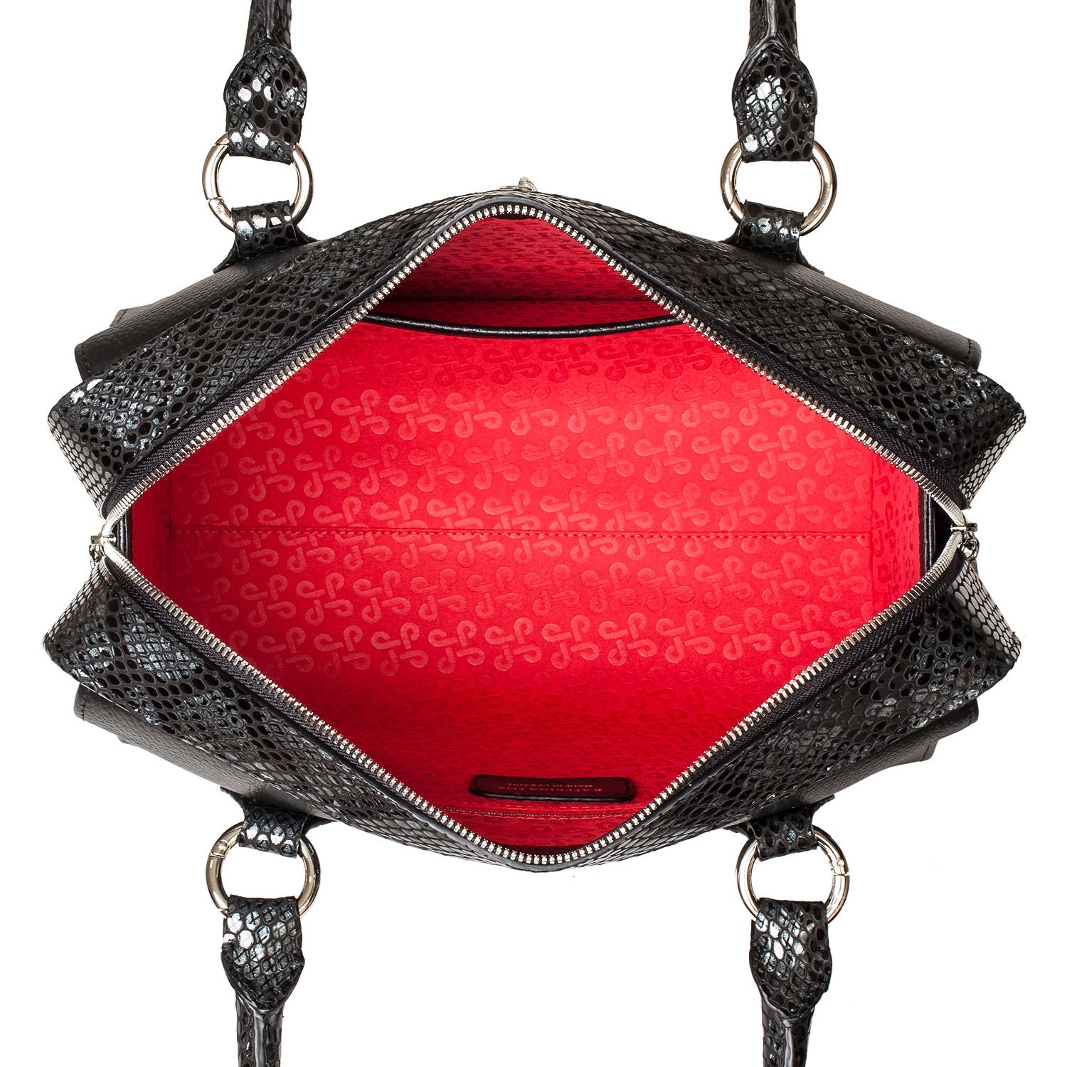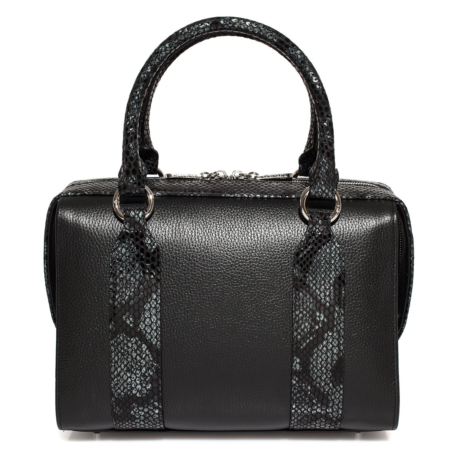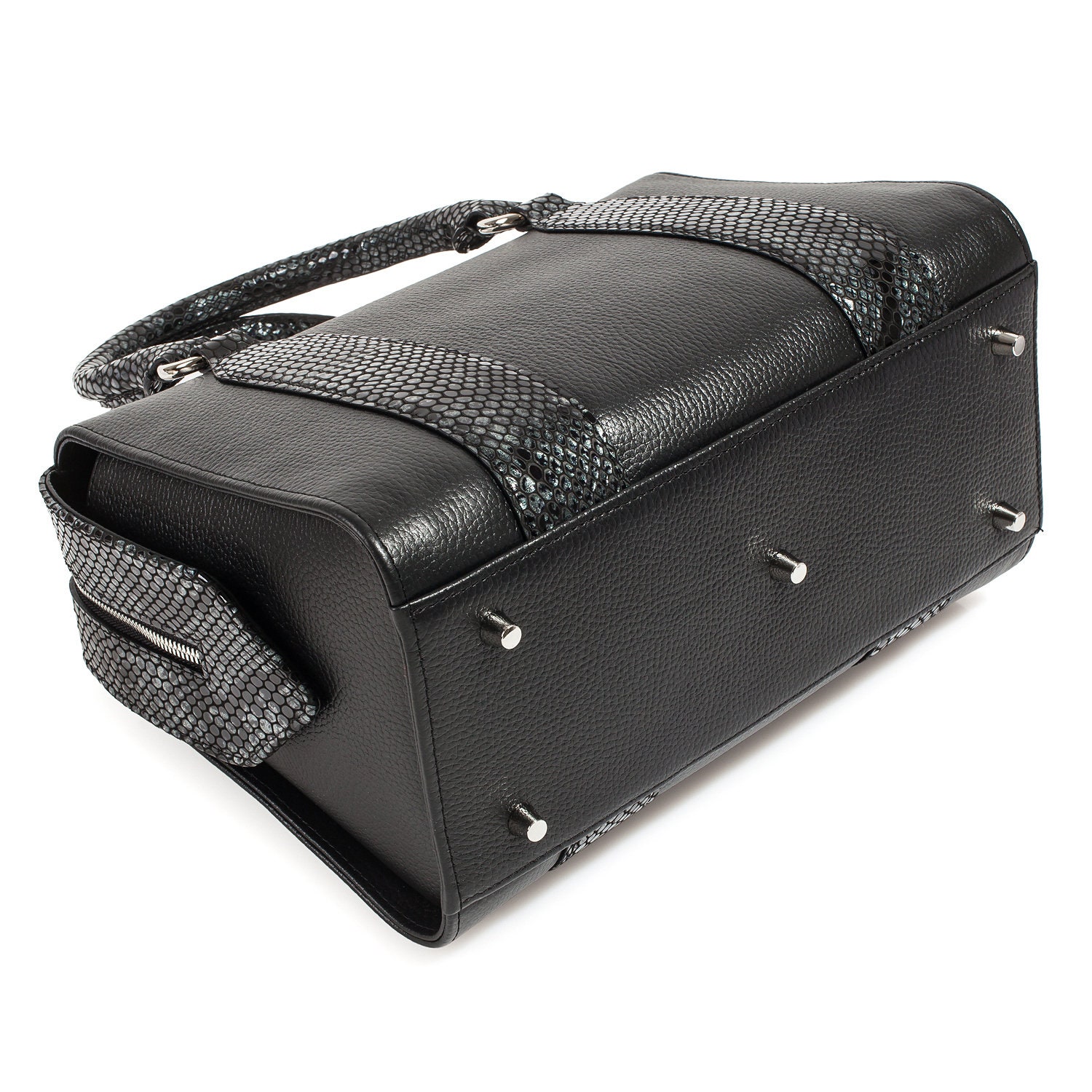 Black genuine leather handbag from ukrainian designer Katerina Fox. This model is designed for women who appreciate the sleek design combined with functionality and comfort. High-quality and reliable hardware ensure long service bags.The internal space of a bag is equipped with one spacious compartment and one patch-pocket and one zipper pocket. The bag is closed with a zipper. The bottom of the bag is protected with metal legs. The kit also includes a storage bag.